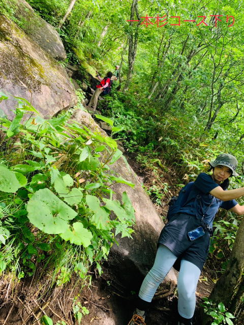 岩が濡れていて滑りやすく注意しながら下る。転んだ者もいたようだ。