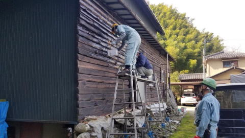 9:00前から作業開始、会館外壁南面の塗装、内外の掃除を行い11時頃終了、解散。