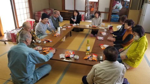 宴会は早々にお開き。21時頃就寝。山崎は2階の非常口の小上がりで寝る。