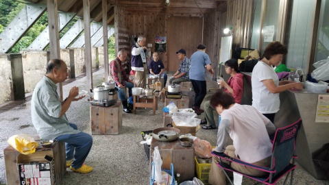 ・17時05分、キャンプ地の九頭竜レイクサイド着。昨日より1時間早い戻りで日没までには時間があった。陽が沈んでからの夕食準備は心も少し沈むけれども、今日は準備も明るく、楽しい食事になった。標高860メートルまで冒険したこと、頑張って下山したことが明るく楽しい夕食というご褒美となって心を和ませた。
