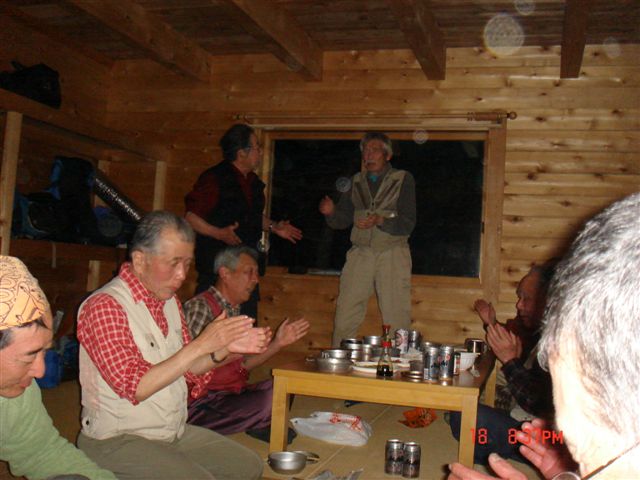 17:30 夕食開始。明日の登山を思い浮かべながら、楽しいひと時を過ごした。