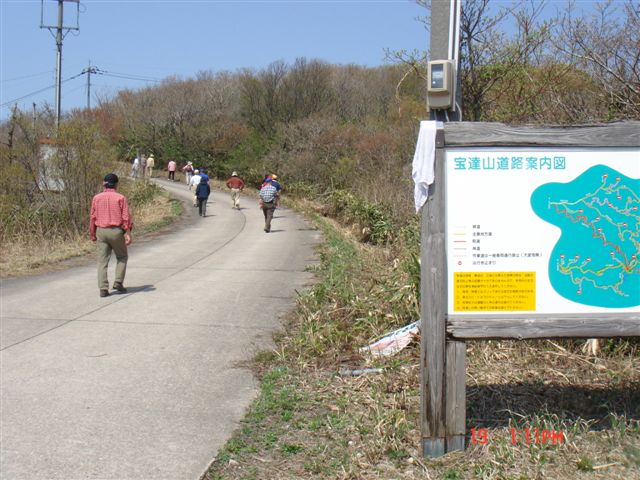 11:35 宝達山に向け出発、13:10ごろ駐車場に到着、ここから車道を歩いて頂上に