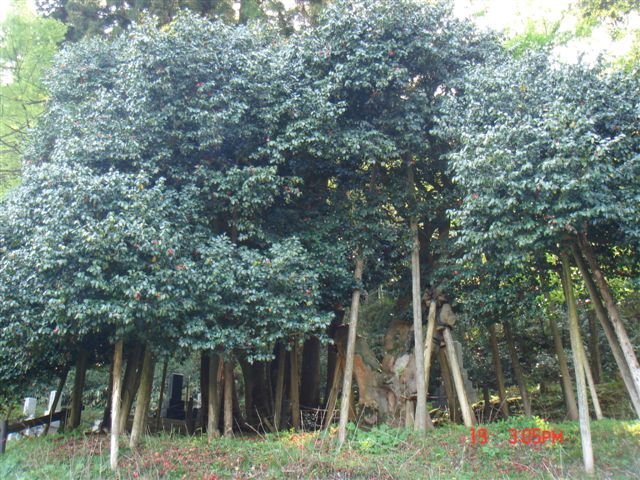 途中で、寄り道をして老谷の大椿(日本一のやぶ椿とのこと)を見学、