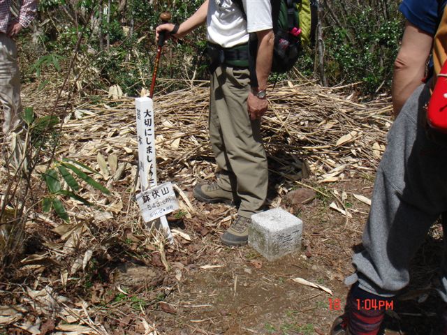 13:25 頂上に到着、一等三角点を確認、記念写真を撮った。