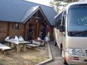 下山後今日の宿泊地の「健康の森」にマイクロバスで向かう。