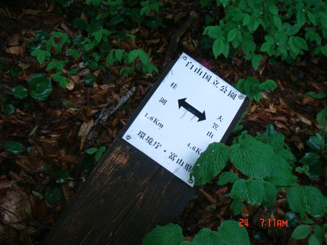 7:10 桂湖から1.6km(大笠山へ4.6km)地点に到着。