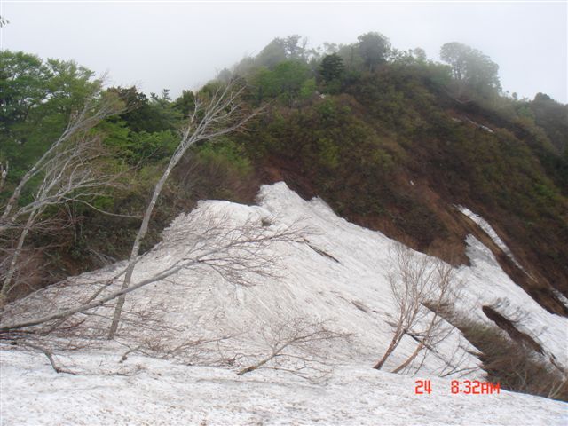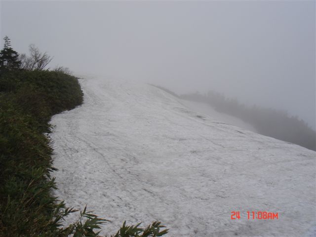 しばらく登っていくと、窪みに雪が見え出し、所々に石楠花も見ることができた。