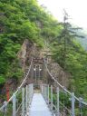 吊橋を渡りいきなり急な鉄ばしごの登りが続き、鉄ばしごが終わると急な痩せ尾根の