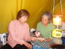 女性陣が山菜料理に腕を揮い、外では炭を熾して魚焼く準備着々。