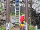 つり橋を渡った先に、いきなり急な鉄梯子が連なって見え、大変な山を実感した。